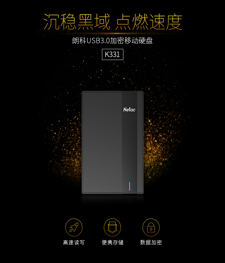 朗科(Netac) K331/1TB USB3.0 移动硬盘 高端商务黑系列 2.5英寸 黑色