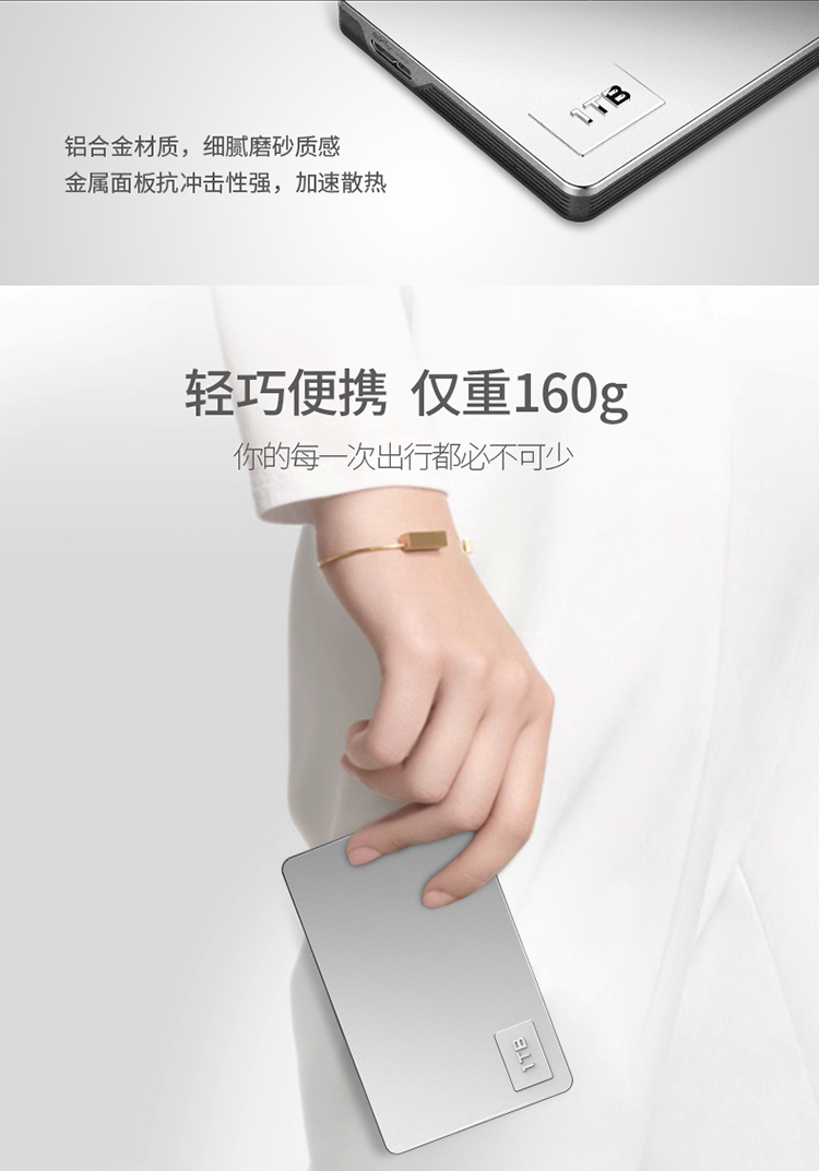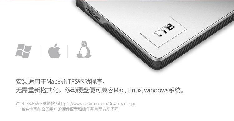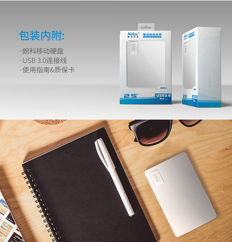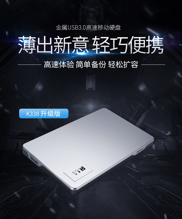 朗科(Netac) K338/1TB USB3.0 移动硬盘 高端合金加密版 2.5英寸 皓月银