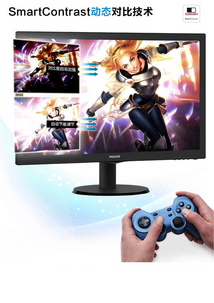 飞利浦(PHILIPS) 223V5LSB2 显示屏 21.5英寸 LED宽屏液晶显示器 黑色