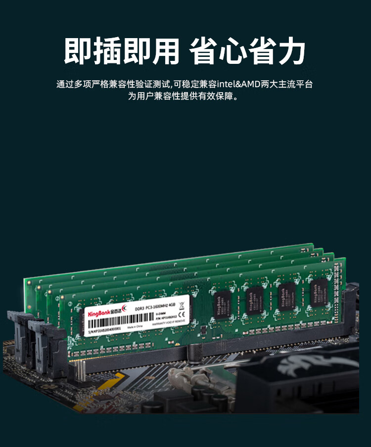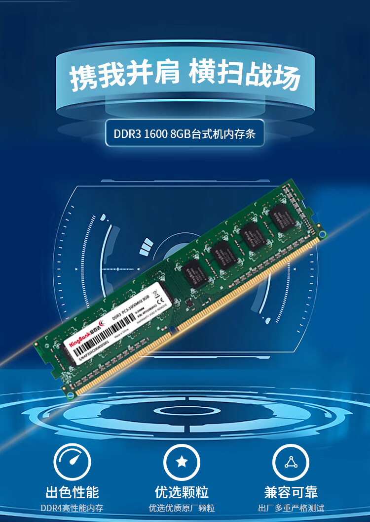 金百达(KINGBANK)8GB DDR3 1600 台式机内存条