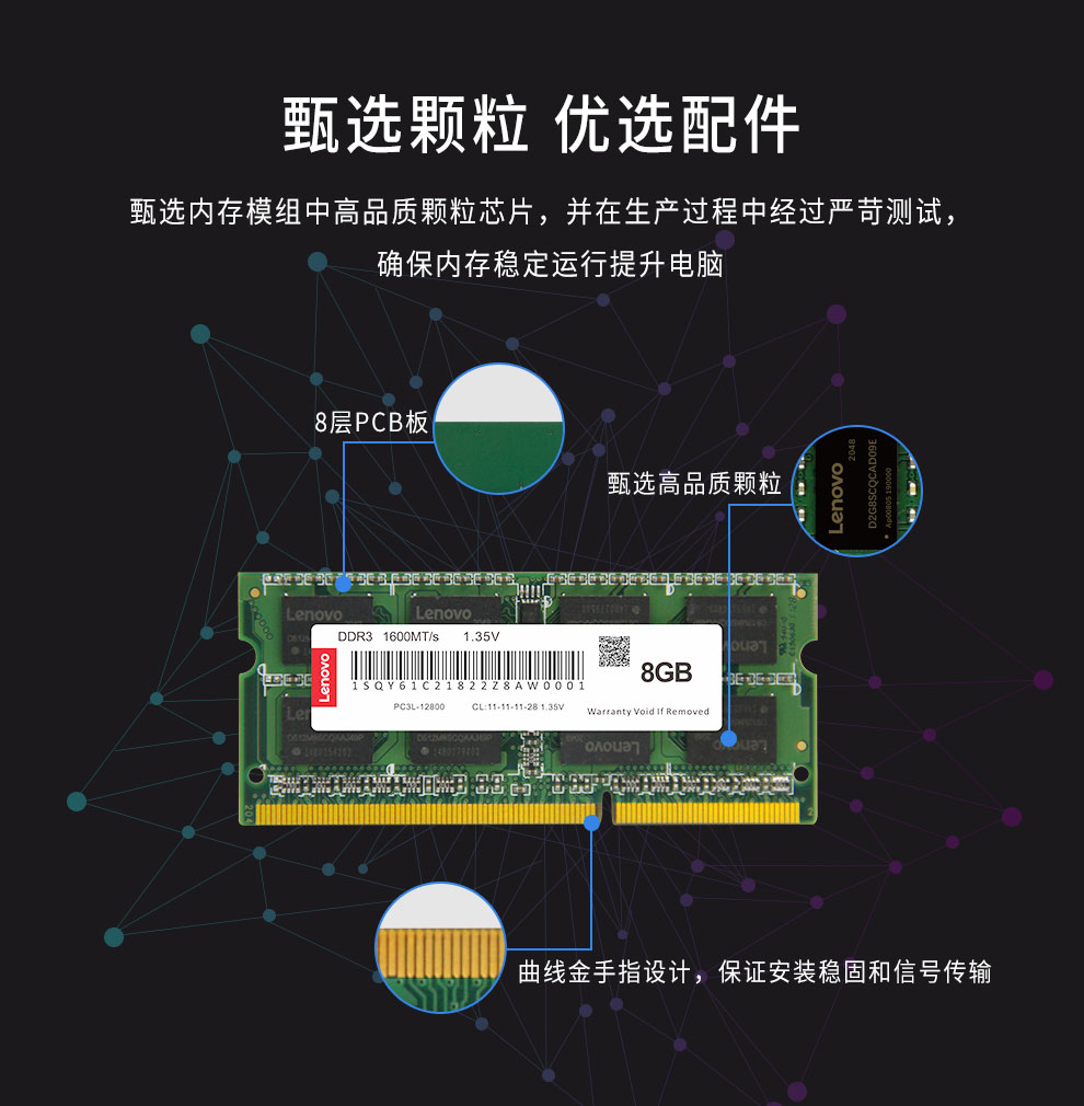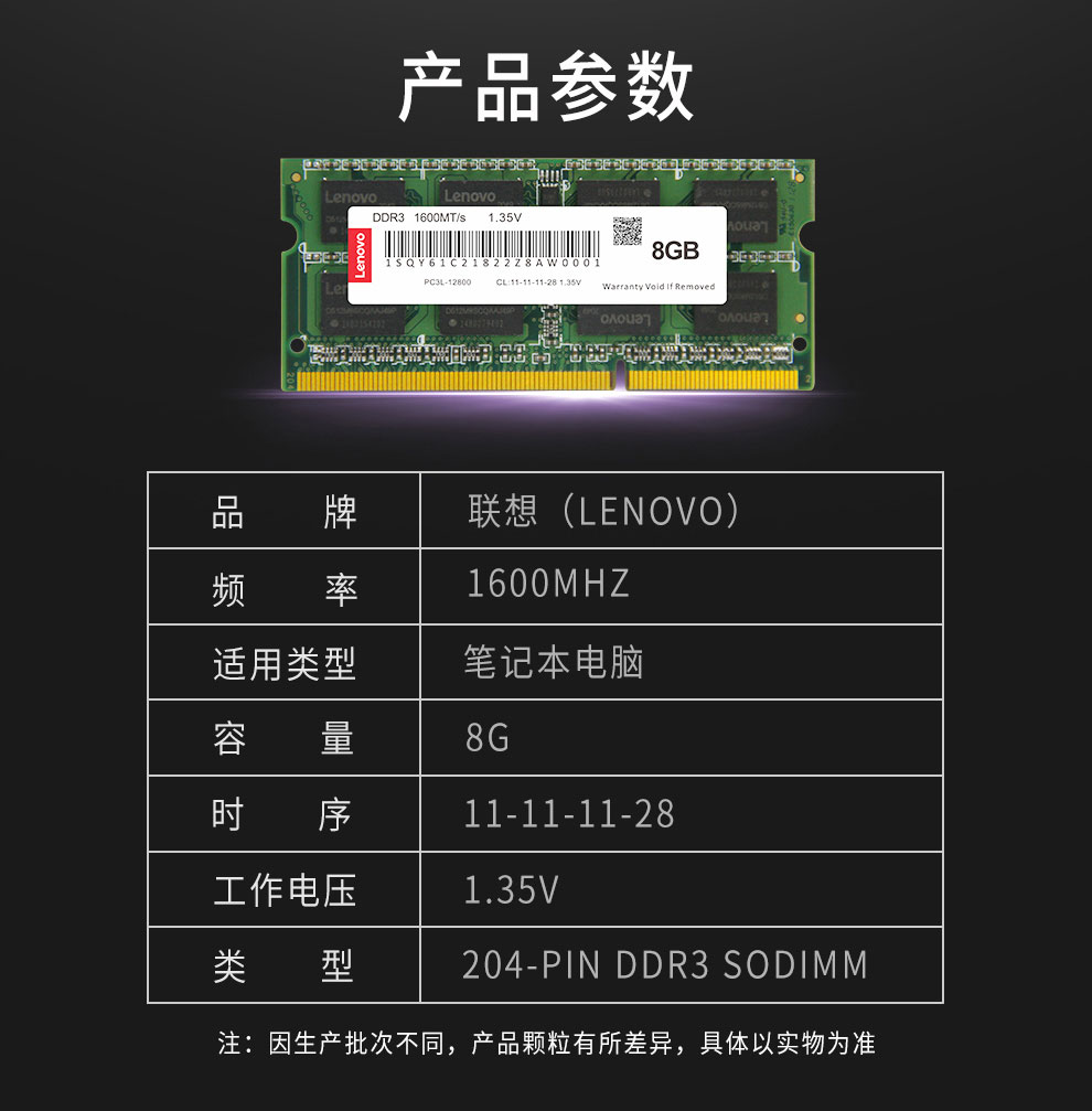 联想(Lenovo)8GB DDR3 1600 笔记本内存条