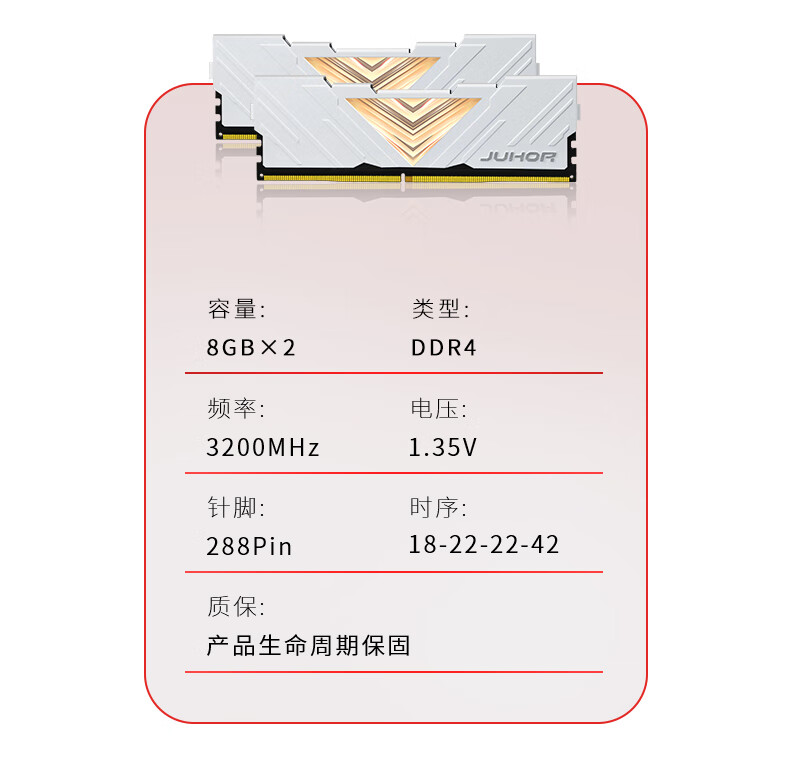 玖合(JUHOR) 16GB(8Gx2)套装 DDR4 3200 台式机内存条