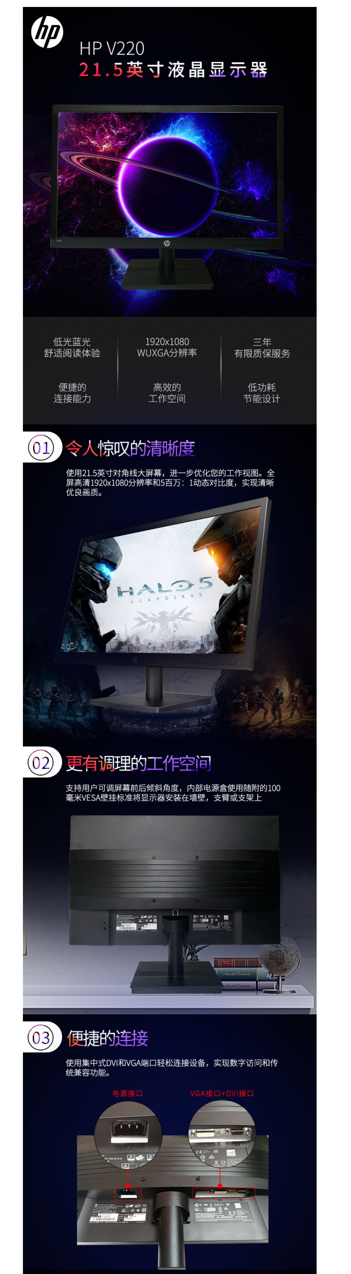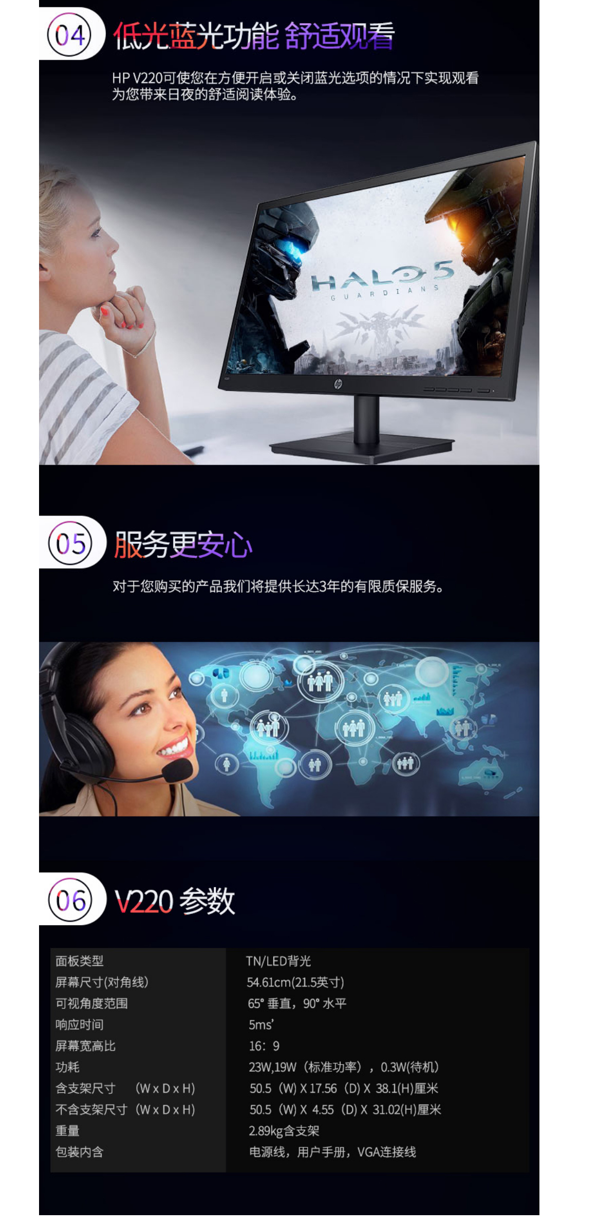 惠普(HP) V220 21.5英寸 LED商用液晶显示器 电脑显示屏 (21.5英寸) (21.5英寸)